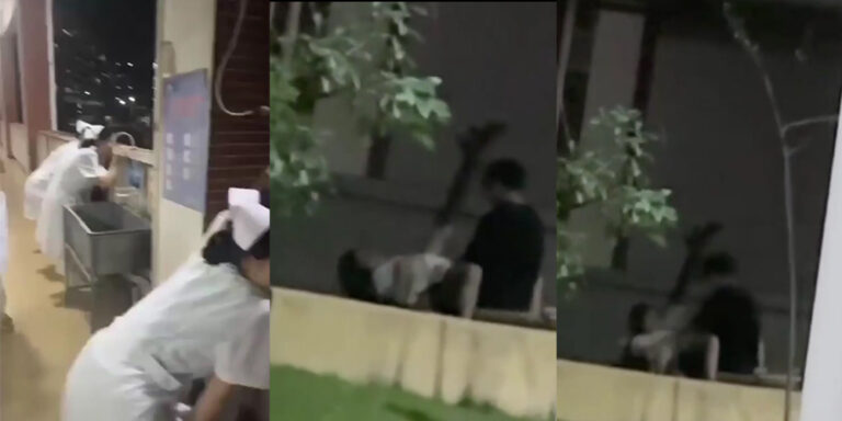 这里平时是学生休憩的地方,但这对情侣毫无顾忌地亲密举动超出常人想象。小护士们在课间经过,原本只是想透气聊天,却被这大胆一幕吸引住,默默地站在一旁观看。情侣沉浸在自己的世界里,未察觉有人注视。