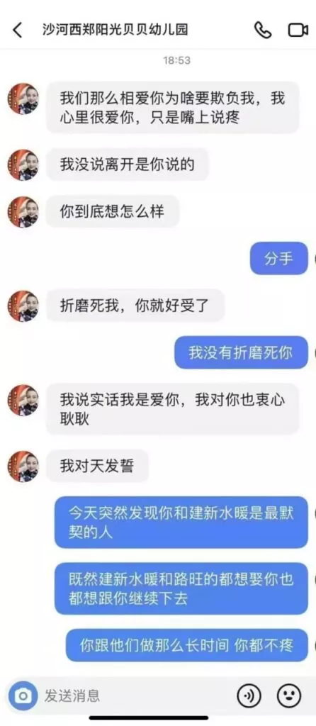 共享女友的首位人物?令人震惊的是,山东莱州市沙河阳光贝贝幼儿园的一名幼儿教师竟与家长发生了不当关系。曝光的聊天记录显示,这名女性与两名男性之间存在着复杂的纠葛。