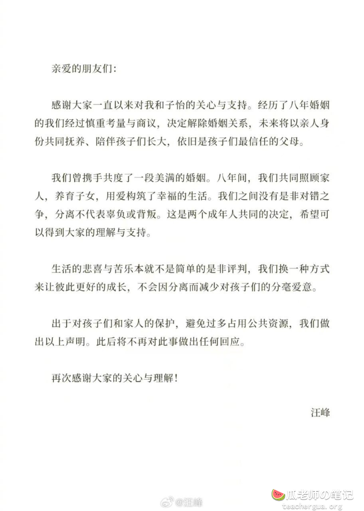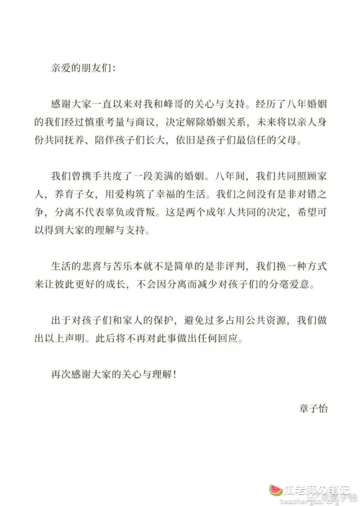 二人的离婚声明。