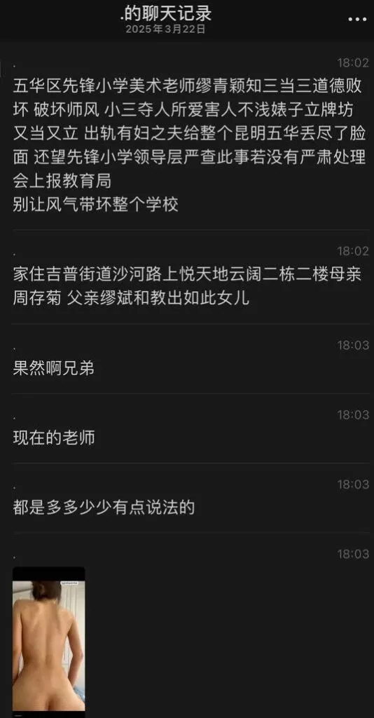 云南昆明先锋小学美术教师缪青颖,师德严重败坏,被曝光知三当三,苦主将这位人渣教师的罪证印刷成册,在校内传播。表面看着兢兢业业的教师,私底下竟然吸引已婚男教师,而学校领导知道此事后并无任何处理声明。