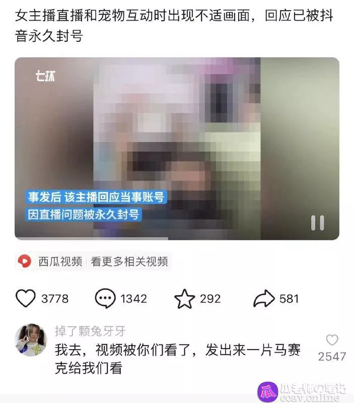 抖音宠物主播小婷和自己的爱犬互动的时候,高了一些。。。。有点变态的事。。。然后就被秒封了