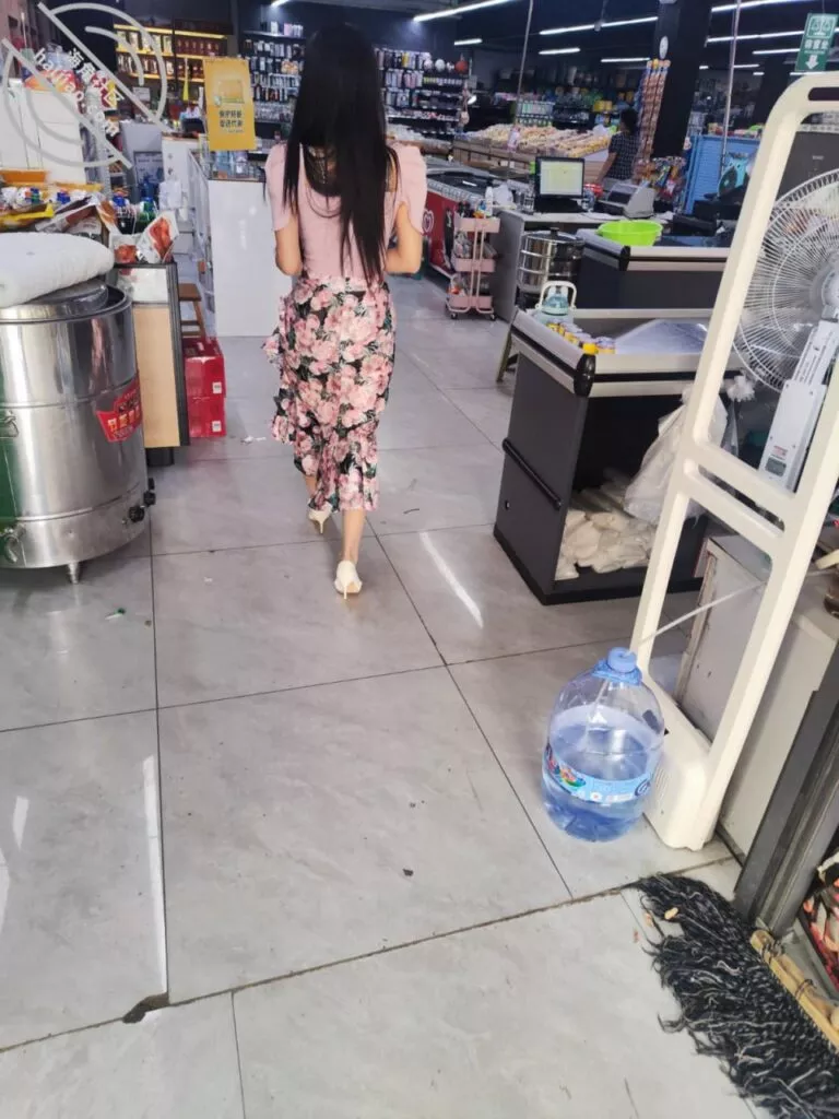 下车我裤裆顶着个小帐篷跟着嫂子去了超市,嫂子屁股一扭一扭的确实受不了了