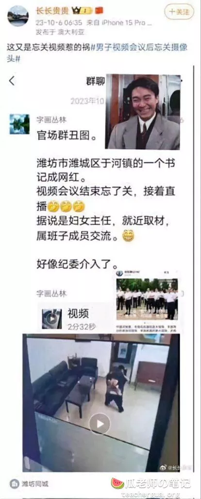 🔥官场丑闻山东潍坊市潍城区于河镇的两个干部被停职调查会议结束忘了关监控和妇女主任在会议室深度交流偷情