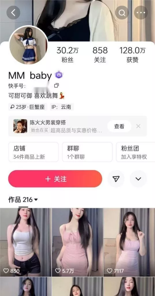 30万粉丝快手擦边网红MMbaby,黑长直加御姐属性轻松拿捏一众老司机,白瘦幼再萌也抵不过富有魅力的女人味。线上平台擦边拿捏,线下福利视频露脸出镜。