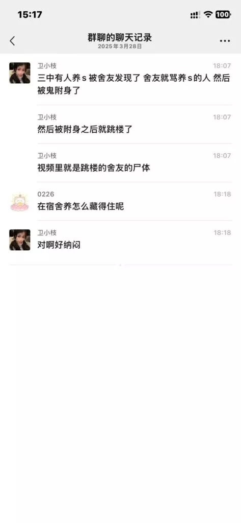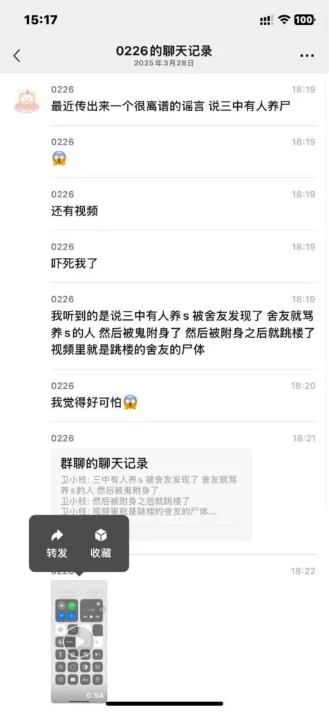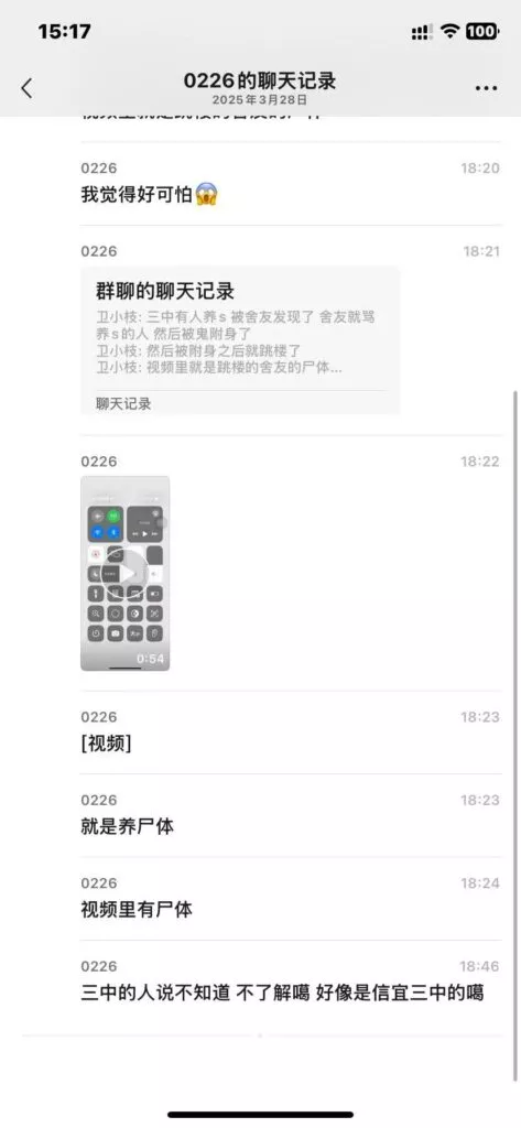 视频多半为在殡仪馆入殓阶段偷拍到的片段合成,聊天记录可以伪造,也或许是有学生故意为之,在观看前请三思