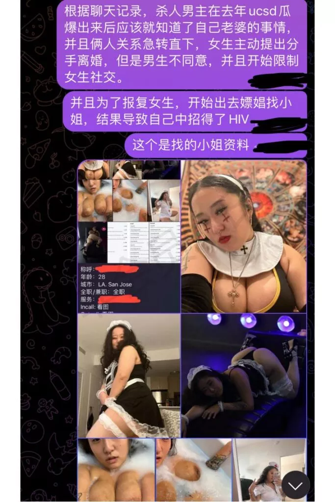 PPT中透露陈立人的妻子,其实早就有过多次出轨行为,甚至参加了多次银帕,并且指出正是去年被曝光的UCSD大瓜的主人公Vince(瓜老师之前发表过想关内容主页搜索UCSD即可)。也就说,陈立人的杀人动机,正是被妻子的不忠行为彻底激怒,造成了一场悲剧。详细内容请看PPT,文末附带下载链接
