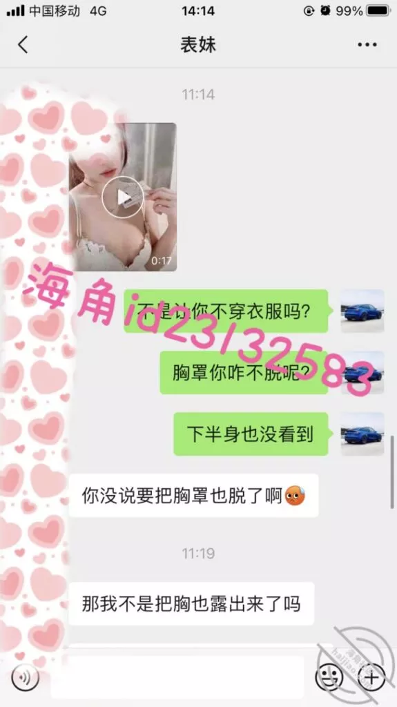过了一天都没见表妹找我小号,今天早上问了一下她,原来拍了但是不敢发,安抚了一下她,终于发了视频过来。