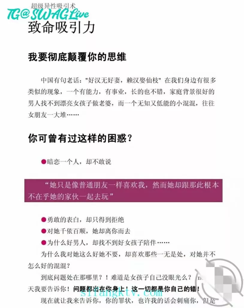 没想到回我信息那叫一个速度,先说我看错了,后说送东西,百般解释,态度还强硬。老师都是这么的盛气凌人么?昨天跟我说想给我公布于众的时候,我就怒了,想摊牌,但是想想浪迹教的理论,男人大度一些,还是算了,,我真的有些心态崩了,这半年以来pua的课程我是天天看,吸引力法则我也懂(一个男人是优秀的,优秀的,温暖的,有趣的,独立的,那这个人自然就有了吸引力)但是对于我大姨子这样的职业女性来说,我感觉什么用没有!叫她等我,就在刚刚我去找她,不接电话!不回信息!人也找不到!知道我内心有多失落么?