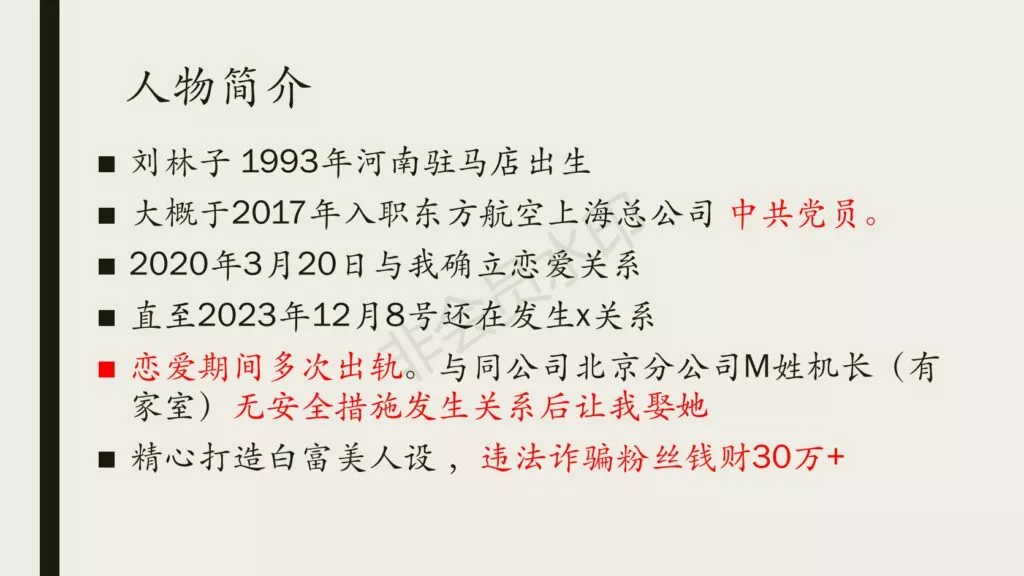 东航上海乘务部捞女刘林子被发现真面目,长期约炮厮混隐瞒男友,精心打造白富美人设直播骗取粉丝财产,这样的人渣就必须狠狠地曝光
