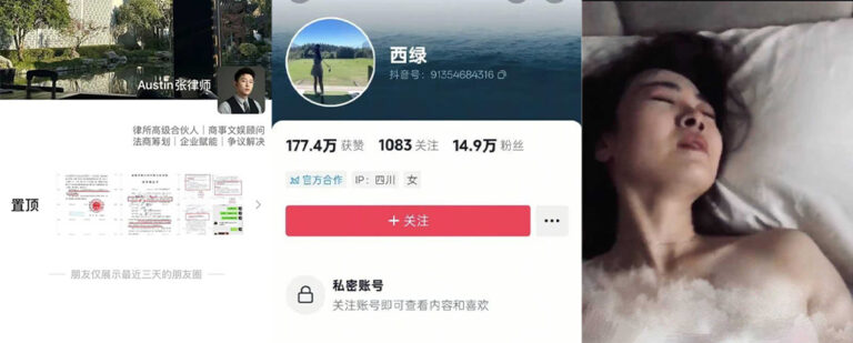 前几日被锤爆的抖音最美女律师西绿(赵瑾一),被证明律师证是p的,被网友戏称演戏把自己也演进去。近日有更大爆料指出,西绿的搭档张宸铭,两人表面上在社交平台靠着cp炒作人设,实际上西绿被曝出早就是已婚状态,二人炒作cp也开始假戏真做。