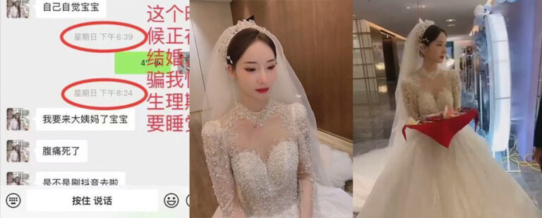 福建德化一名女子张丽琼被指同时与两人交往。她对与自己同居一年的男友谎称“来例假,需要回家几天休息”,实际上却在此期间与他人举行了婚礼。男友在看到那段婚礼视频后当场崩溃。事后有人称,她利用“来例假要回家几天,三天后再回来陪你”的说辞掩盖真实行程,最终背着男友完成了婚礼。
