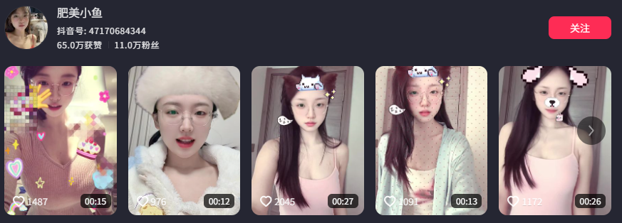 抖音粉丝达11万的网红“小鱼”,以略带擦边的风格走红。她拥有清新少女般的容貌,却也兼具比御姐更为火辣、令人注目的身材,吸引了大量关注。