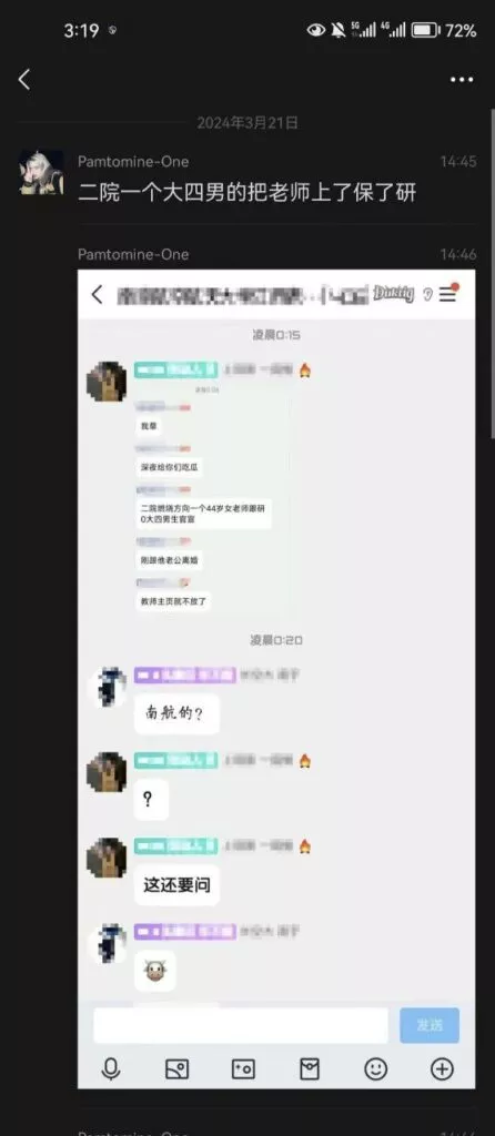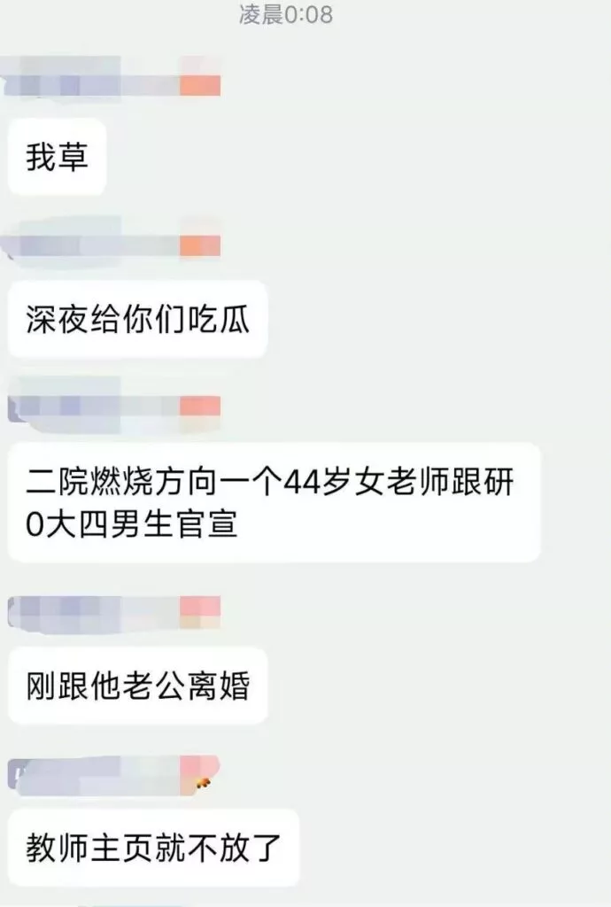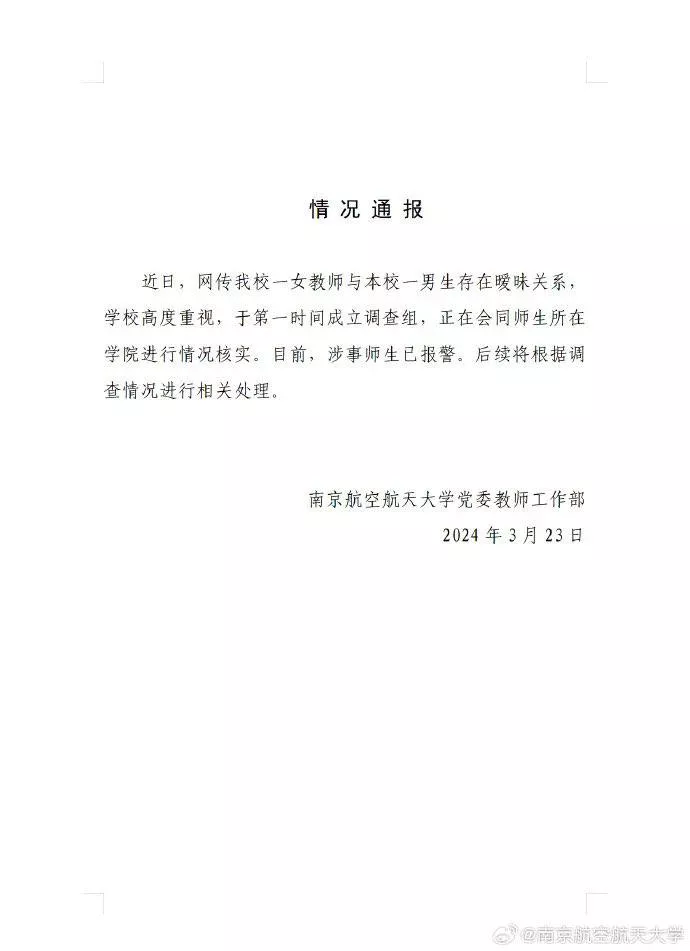 南京航空航天大学一位女副教授与一大四男生发生性关系。女教授今年44岁,男生22岁大四临近毕业,两人相差22岁。值得一提的是,女教师刚刚离婚,单身且无任何相亲对象,男大也是单身,两人均无出轨劈腿嫌疑。我看你是真的饿了。
