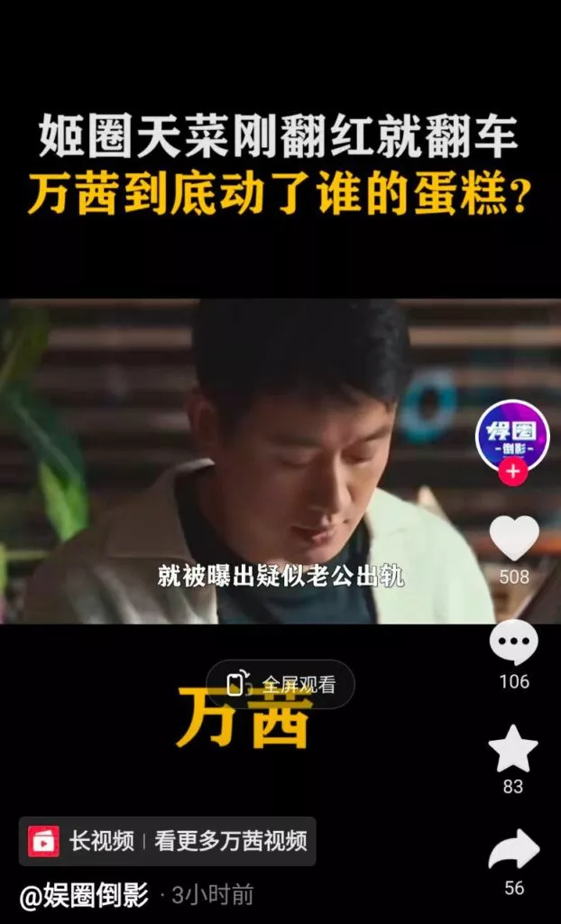 娱乐圈顶级女星万茜陷入婚姻危机,狗仔队拍到她的丈夫与一名女子前往酒店。万茜的丈夫下车后,那名女子跑了几步,将一张疑似房卡的物品递给他。随后,两人一起进入酒店。几个小时后,他们一同从酒店走出,并一起前往饭店用餐。在此期间,万茜正在剧组拍戏。