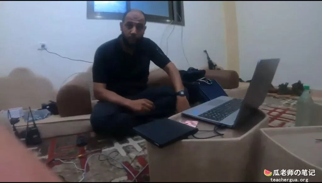 第一段视频似乎显示了夜间袭击的立即准备工作。哈马斯恐怖分子在加沙的一所房子里准备各种装备。