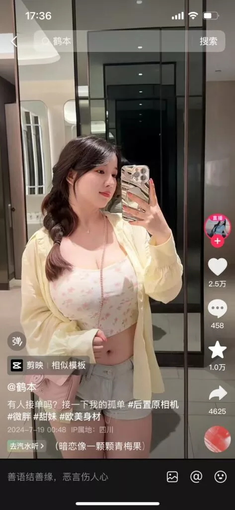 抖音37万擦边网红鹤本两段私密短视频曝光超大杯真惹眼