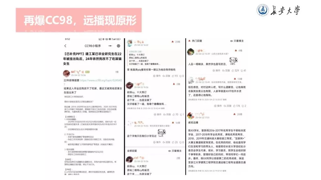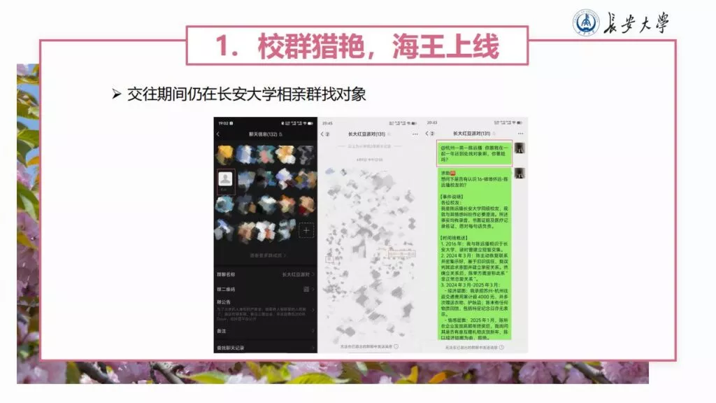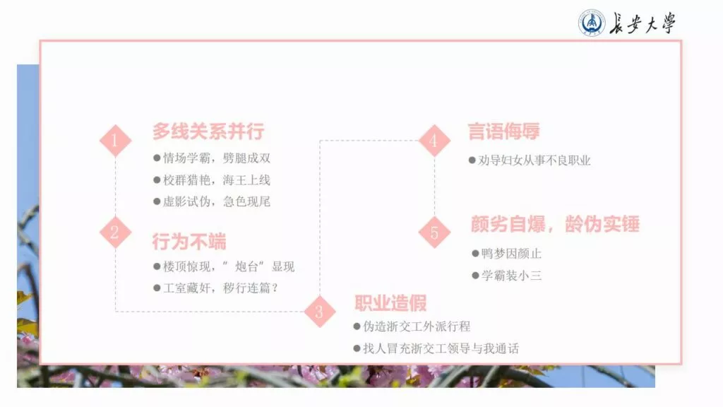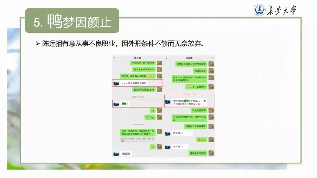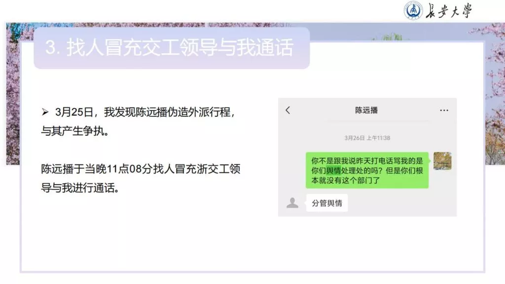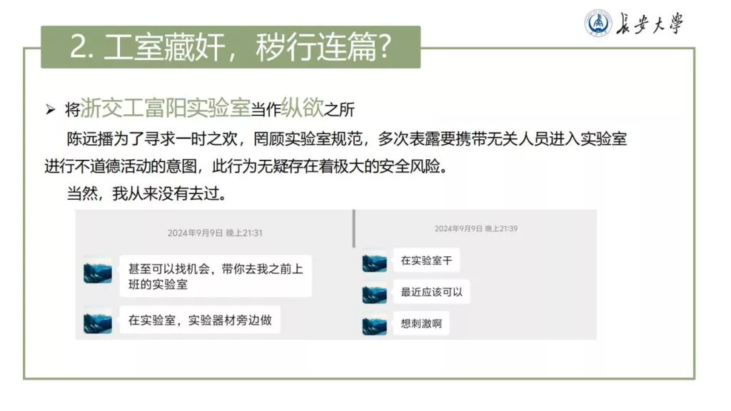 32页的PPT暴露了长安大学一名不道德男性陈远播的行为。他长期进行心理Cao控(PUA)女友,将女友视作免费的性伴侣,甚至劝告她去从事卖银。此外,他大部分时间都在物色新的猎物,或是在出轨的路上,或是已经出轨。