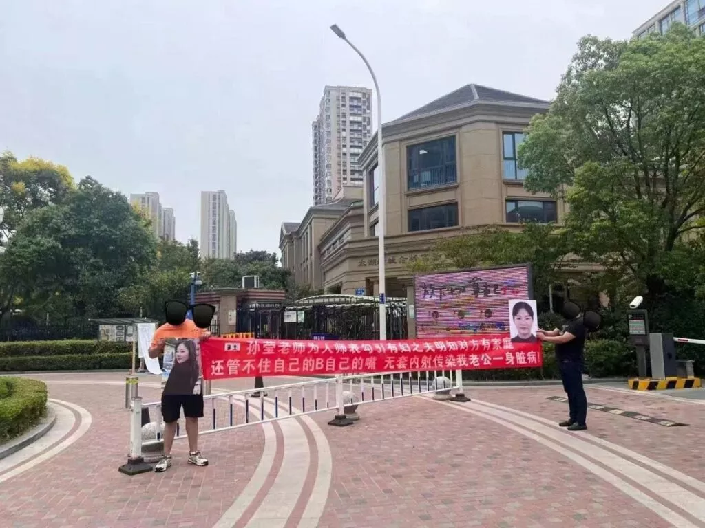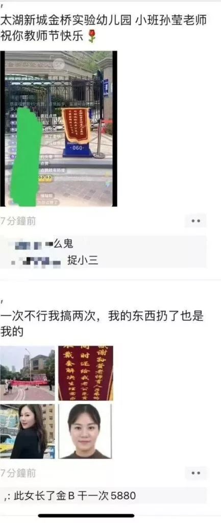 江苏无锡太湖金桥幼儿园被挂横幅批判教师孙莹吸引男家长卖肉