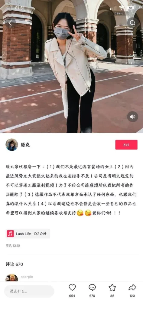 省流版:big 烟枪的 Twitter 最新视频中,女主身穿好利来服务员的服装。